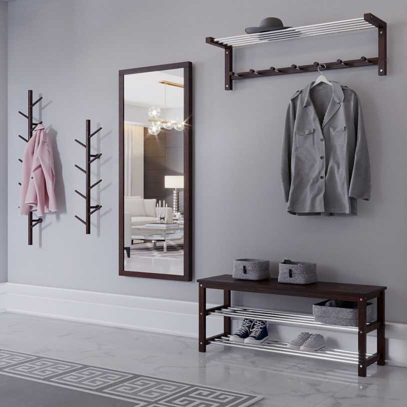 Это зеркало удобно разместить в углу холла. Компактным его назвать нельзя, поэтому оно подойдет только для помещений большого размера. Сзади у зеркала есть крючки и удобная перекладина, последнюю можно использовать как вешалку. Например, разместить на ней пару комплектов одежды, зацепить зонт и другие аксессуары.