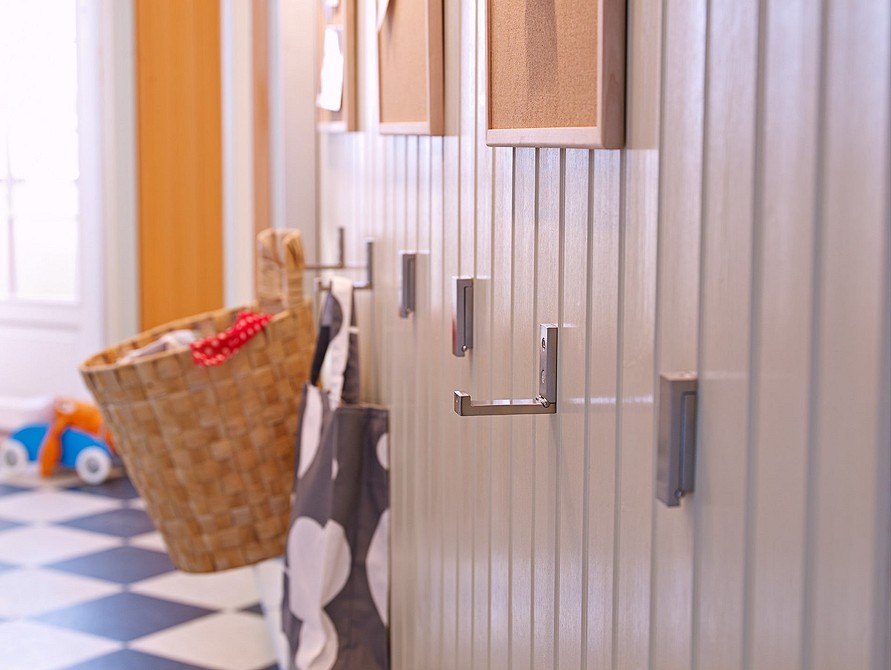 С их помощью можно оформить универсальную систему хранения, которая не займет много места. Уникальность этих крючков заключается том, что они складываются. Соответственно, в закрытом состоянии они очень компактные. На такие можно повесить сумку, зонт, верхнюю одежду, головной убор или другие вещи. Если полноценную систему хранения с их помощью вы оформлять не хотите, то можете прикрепить пару штук около двери. На такие удобно вешать сумку, когда вы приходите домой.
