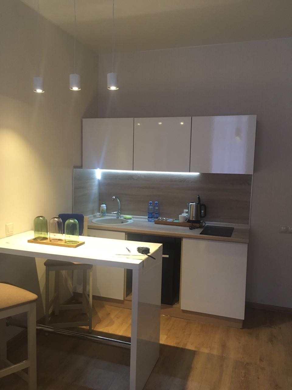 Хорошее освещение – это жизненная необходимость для кухни в квартире-студии, особенно если она удалена от окна и невелика по размеру.