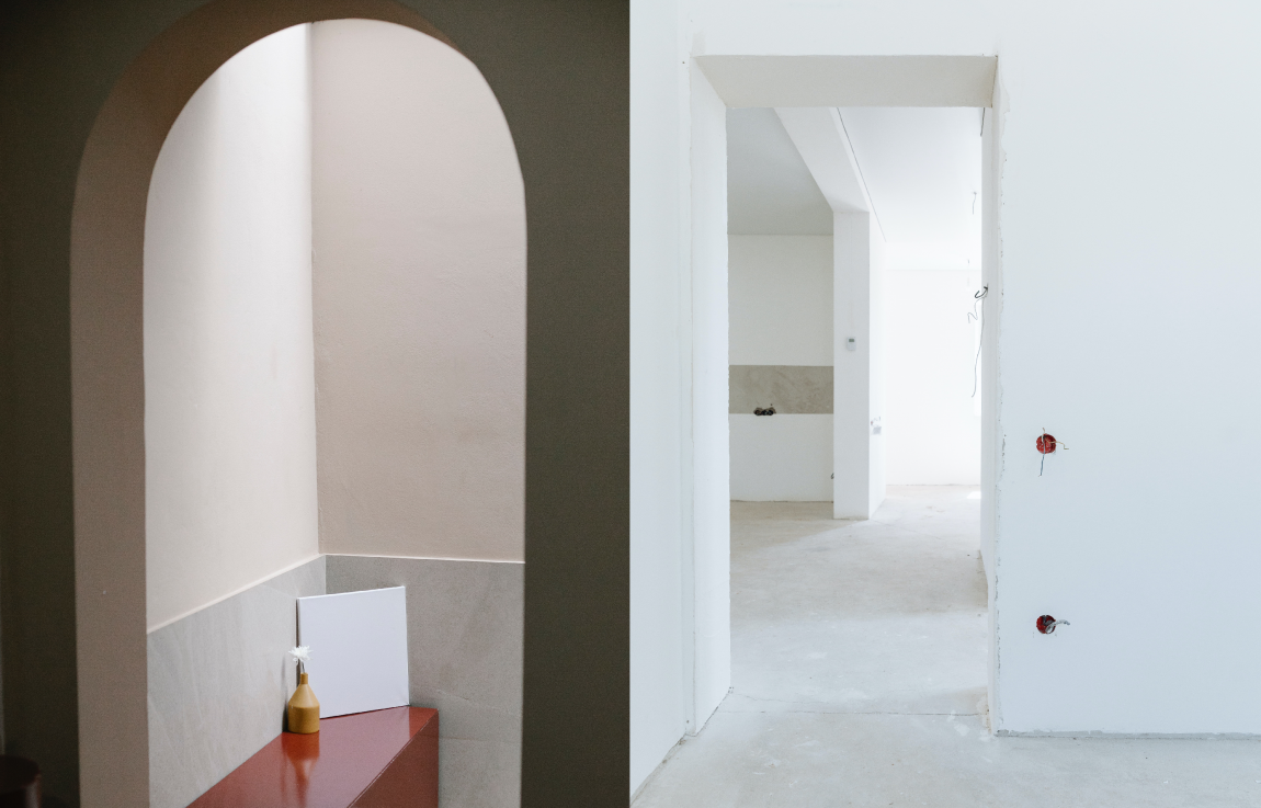 - кирпичные или бетонные стены, необработанная штукатурка;