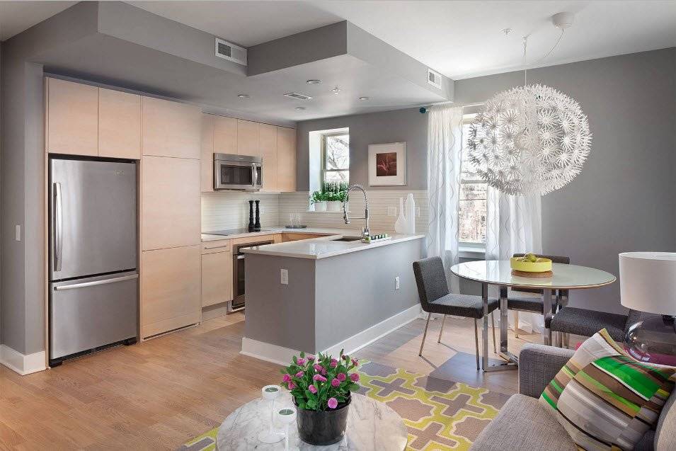 Размер. Если семья не большая, то лучше предпочесть компактные кухни для квартиры студии. Чем больше пространства удастся сэкономить, тем лучше.