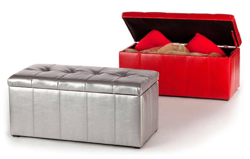 На них можно сидеть, а внутри – держать постельное белье. Пуфики выпускаются разных форм и видов, но для хранения комплектов лучше использовать предметы с жесткой конструкцией: наволочки и простыни меньше мнутся.
