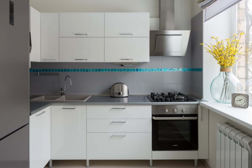 Использование плитки крупного размера для оформления фартука приемлемо только для кухни большого размера