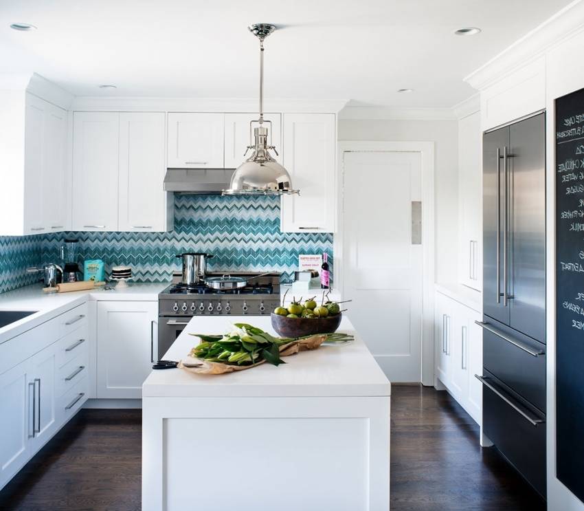 Кухонный фартук из белой плитки — традиционный вариант, который идеально подойдет под любой стиль помещения. Белый цвет обладает особенностью визуально отдалять приближенные предметы, поэтому он особенно подходит для обустройства фартука на маленькой кухне. Такой вариант оформления всегда будет выглядеть стильно, и никогда не выйдет из моды.