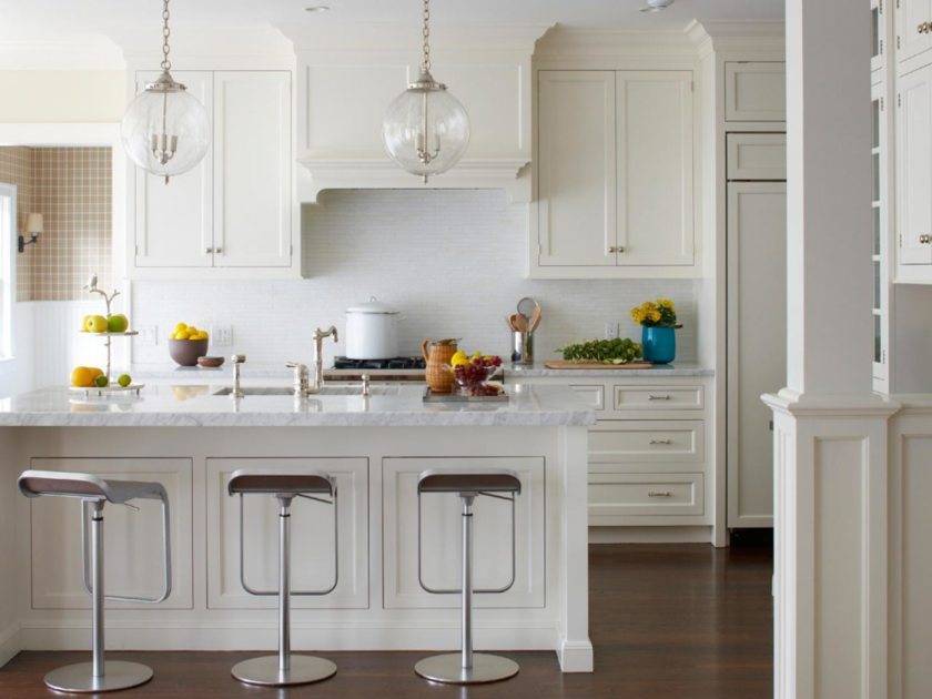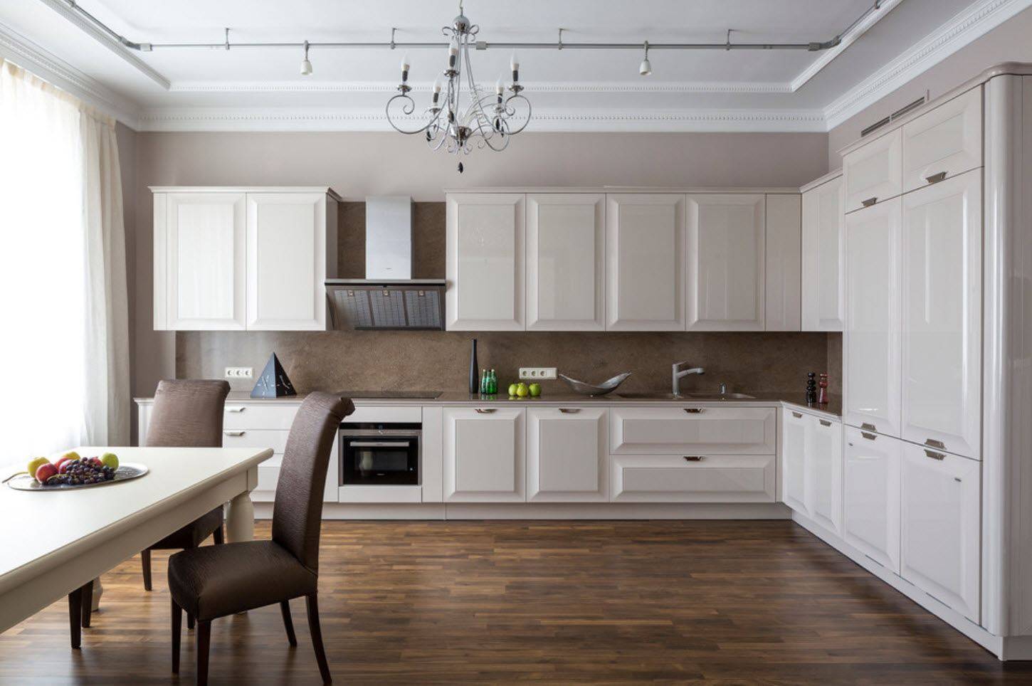 - Трудно вспомнить стиль, в который не вписывались бы элементы белого цвета. Покройте белые дверцы шкафов лаком – и тогда вы визуально увеличите кухню.