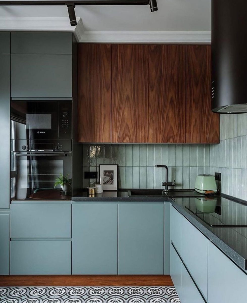 Первый критерий определяет какой должна быть клеющаяся пленка с рисунком для кухни. Для традиционных интерьеров обычно выбирают материалы имитирующие фактуру дерева. А светлые это оттенки или темные, определяют в зависимости от отделки стен и пола, размеров помещения, расположения кухни и уровня естественного освещения.