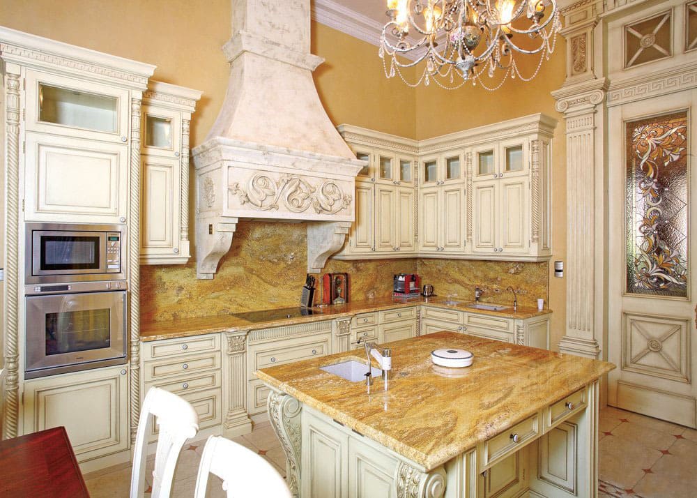 Фасады МДФ под пленкой ПВХ можно «апгрейдить». Дополнить патиной, как и фасады из массива. Патина или финишная прокраска фасада (чаще всего «под золото» или «под серебро») оплачивается отдельно. В результате, при правильном подборе пленки, фасады МДФ ПВХ смотрятся практически идентично изготовленным из массива. Но и стоят при этом недешево.