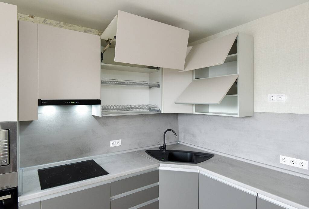 Обращайте внимание на модели с регулируемыми ножками. Они позволят установить кухню ровно горизонтально, что предотвратит скольжение кухонного инвентаря по столешнице. Особенно это актуально для кухонь из МДФ с пленочными фасадами — под пленкой может скапливаться влага, из-за которой рано или поздно гарнитур начнет деформироваться.