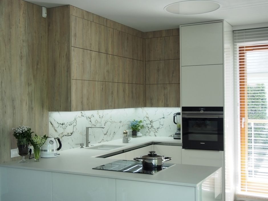 Сразу решила, что фасады кухни у меня будет из пластика. Ухаживать за мебелью вообще красота, нужно только периодически тряпочкой протирать, все просто. По стоимости опять-таки кухня гораздо бюджетнее получается, чем из другого материала, но при этом по своим характеристикам ничуть не уступает.