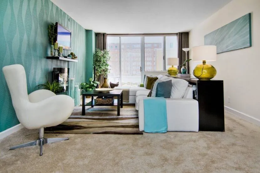 - Разделение пространства. Такой вариант позволяет выделить в помещении несколько зон, например зону учебы и отдыха в детской. Также его активно используют при оформлении квартир-студий. В этом случае можно окрасить зону кухни в один цвет, а гостиную – в другой. При этом границы цветов маскировать вовсе не обязательно.