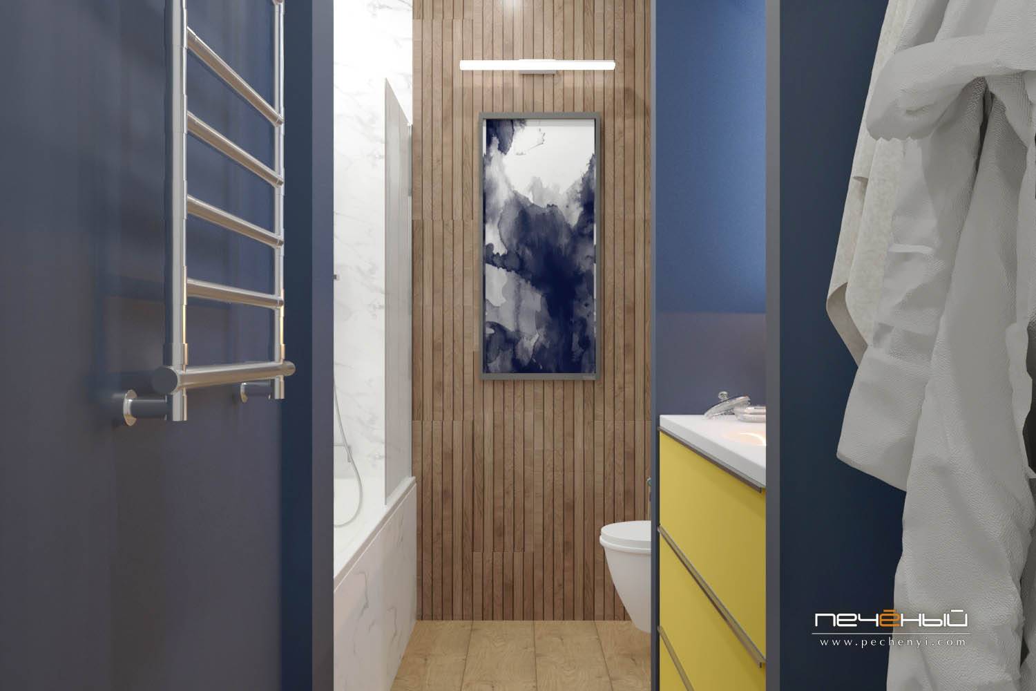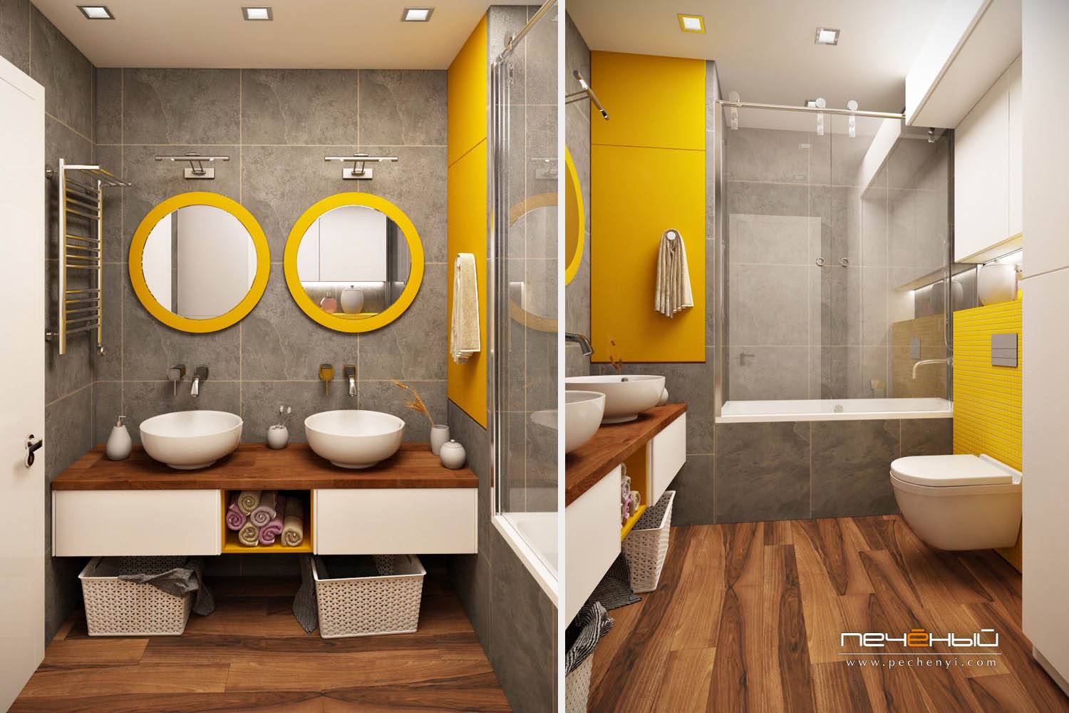 Красивый дизайн квартиры – это не только оригинальный декор. Это ещё и умение извлечь пользу из совершенно невыгодных условий. Так, этот санузел, странной вытянутой формы, превратился в эргономичное и удобное помещение для всей семьи.
