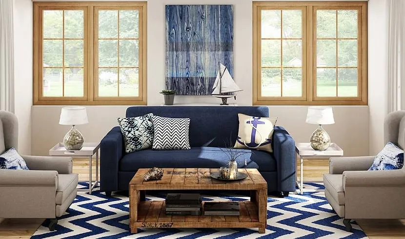 - Синий с белым, бежевым или желтым. Синие оттенки хорошо сочетаются с теплыми оттенками желтого. И наоборот, холодные с нейтральным желтым. Бежевый можно сделать фоновым цветом и разбавить синими акцентами, например, подушками. Для гостиной хороший вариант — светлые синие цвета, разбавленные яркими цветовыми комбинациями.