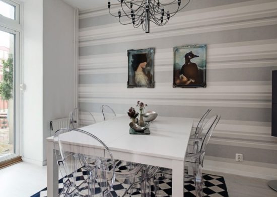 Минимализм – основная тенденция в моде интерьера 2017 года. Предпочтительны геометрические узоры, вертикальные полосы, моющиеся обои светлых тонов. Также используются нестандартные варианты – стеклообои или жидкие обои.