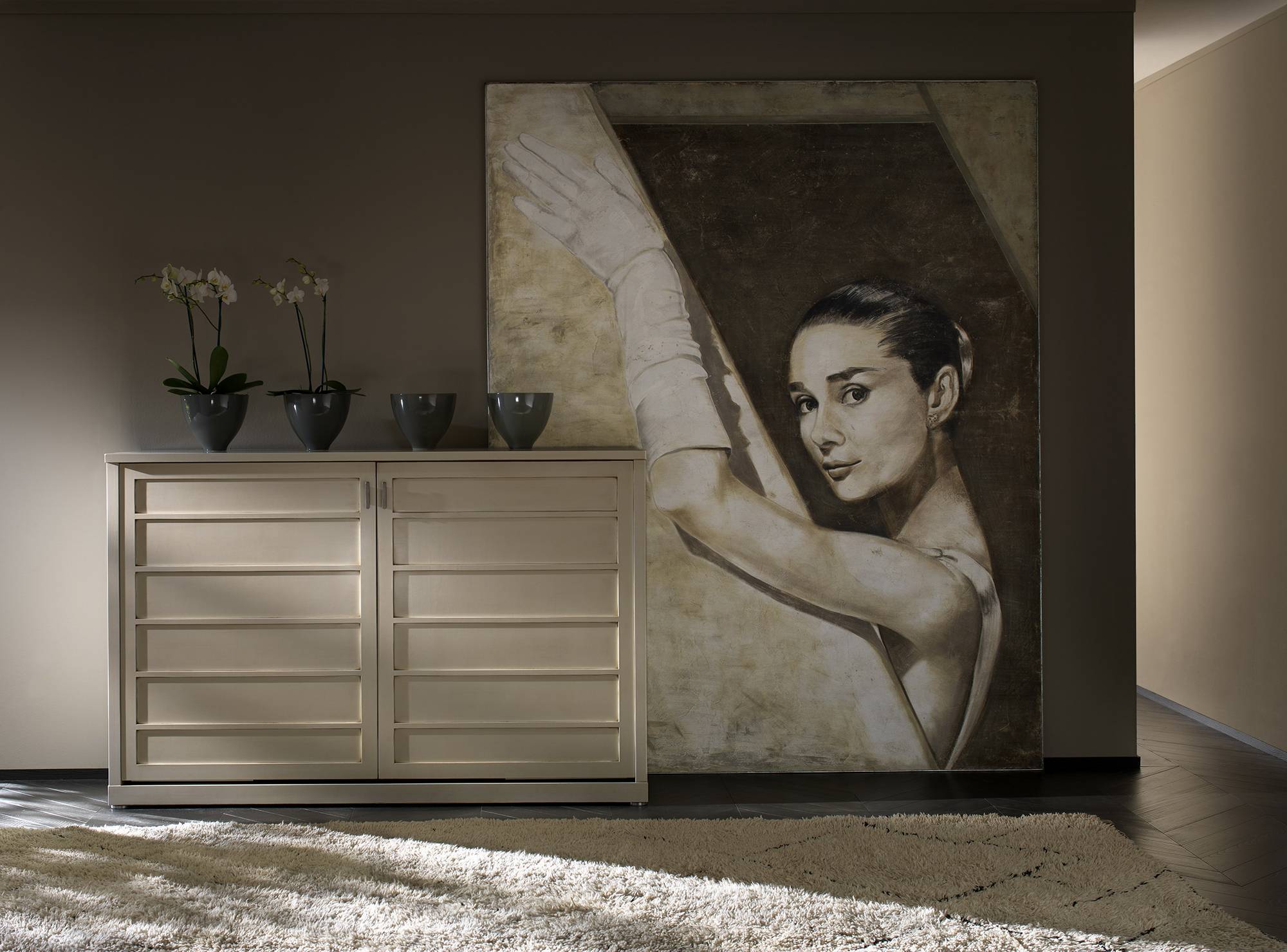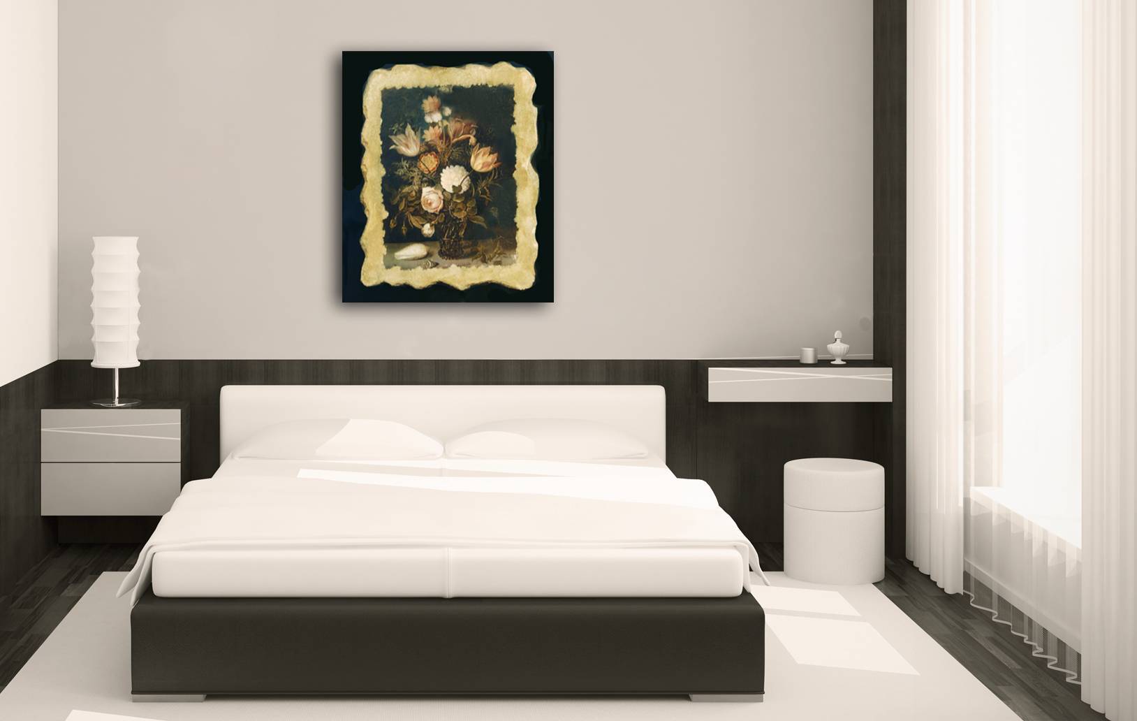 Для классики подойдут репродукции мировых шедевров живописи, изображения цветов, натюрморта. Цветовая гамма остается нейтральной. Из всех видов росписи подойдут на холсте, на штукатурке, на жесткой основе. В классическом интерьере важную роль играют белые или золотые рамки, поэтому можно их использовать.