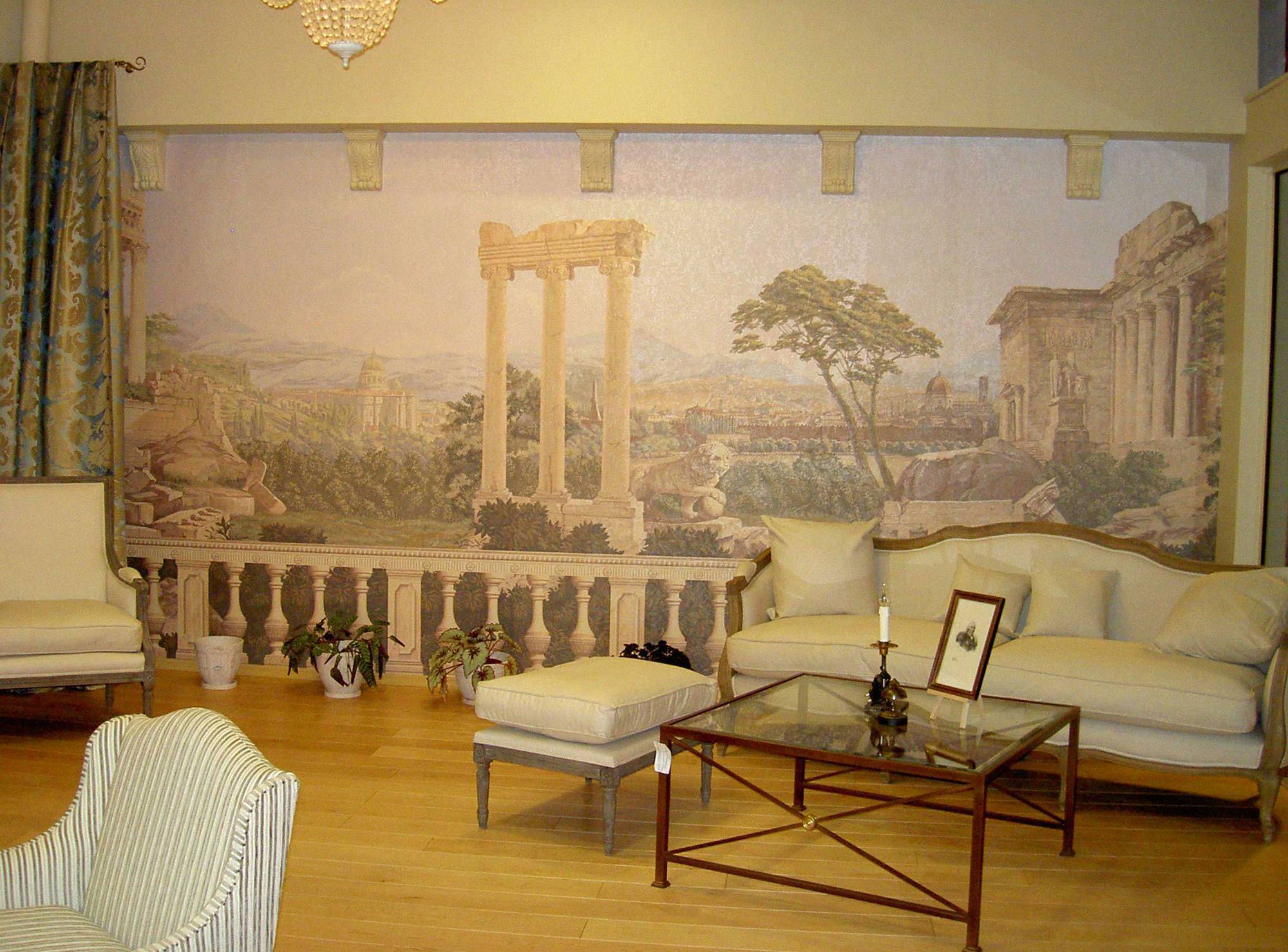 В классическом интерьере чаще всего изображают пейзажи или античные сюжеты