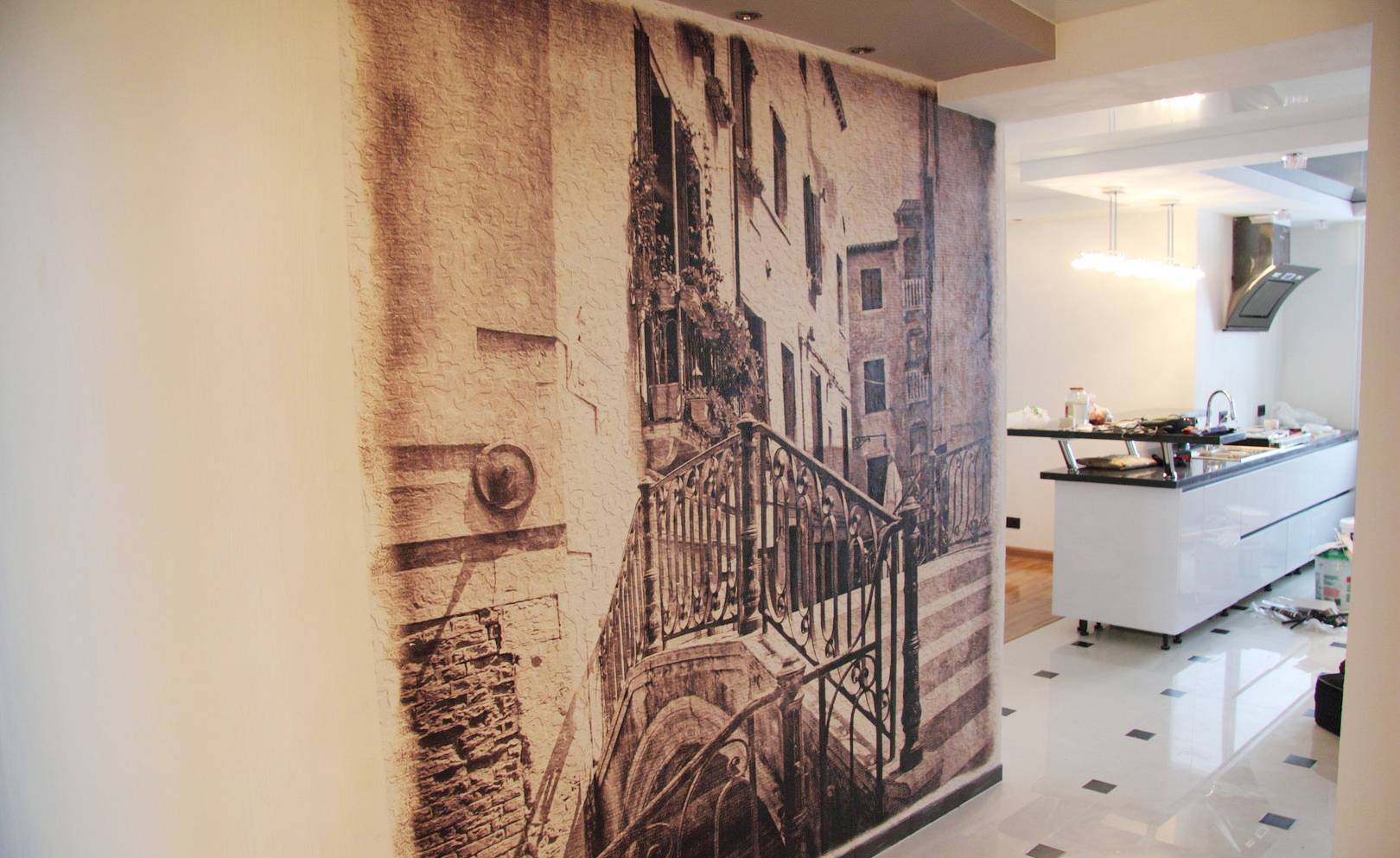 Как вы могли заметить, способ нанесения фрески очень схож с нанесением обоев. Процесс достаточно легкий, но все равно не стоит без должного опыта самостоятельно клеить фреску.