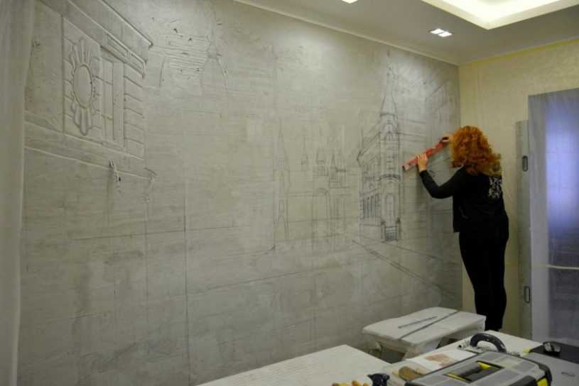 Подготовить саму фреску. Выровнять стену и обработать ее специальной грунтовкой