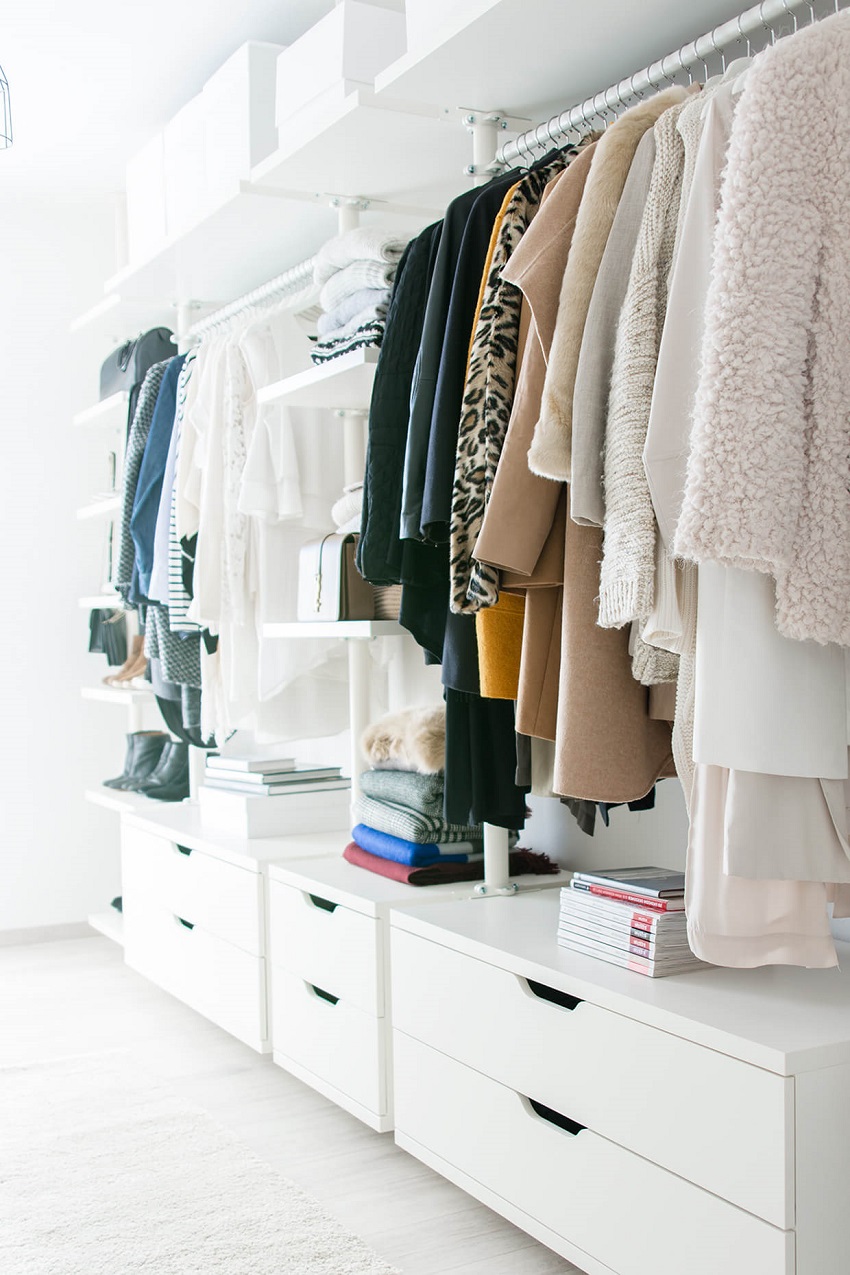 Производители предлагают два основных вида систем хранения для гардеробной комнаты: