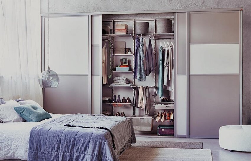 Но если в квартире нет свободного помещения, то под систему хранения можно выделить часть спальни. Отделить пространство можно гипсокартонной или раздвижной перегородкой.