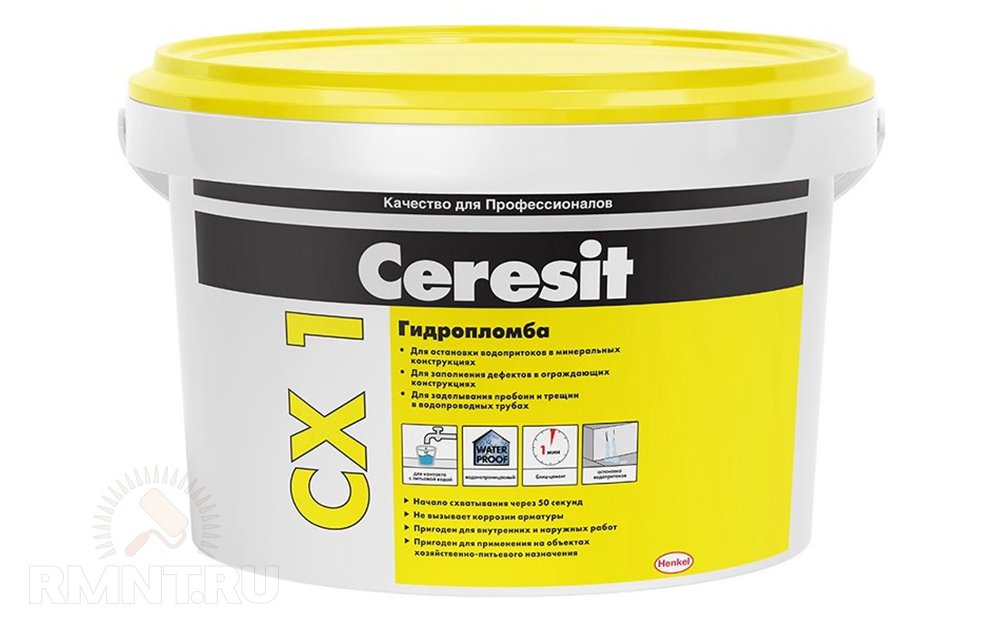 Пальму лидерства в этом плане традиционно занимает Henkel с продуктом Ceresit CX 1. Состав обладает одним из наиболее высоких показателей скорости схватывания, при этом не содержит хлоридов и агрессивных соединений, способных испортить стальное армирование. Более того, эта гидропломба успешно прошла проверку на контакт с питьевой водой, то есть средство можно применять для гидроизоляции колодцев и резервуаров хранения.
