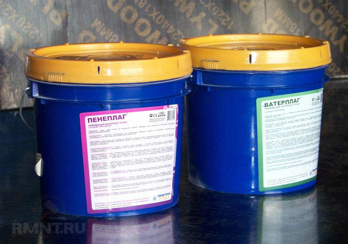 При устранении течей в септиках, технических резервуарах и фундаментах могут применяться средства из средней ценовой категории, известные под такими названиями как «Акватрон», «Пенетрон» или «Пенеплаг». Ничего негативного сказать об этих гидропломбах нельзя: в общей своей массе они соответствуют заявленным характеристикам. Но повторимся: с такими задачами как закупорка трещин, швов между железобетонными изделиями или мест технологических проходов бюджетная линия вполне хорошо справляется, главное, верно определить степень насыщенности влагой и напор окружающих вод.