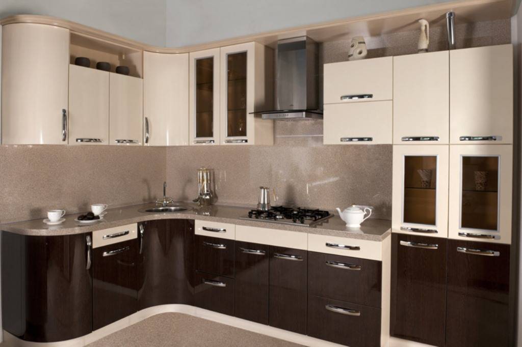 Современные кухни капучино с эффектом глянца (фото см. далее) делают для того, чтобы выделить их. В таком случае будет правильно распределить основной или дополнительный свет с учетом этого нюанса.