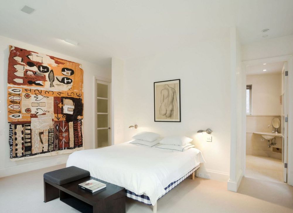Полотно с геометричным рисунком в эклектичной спальне