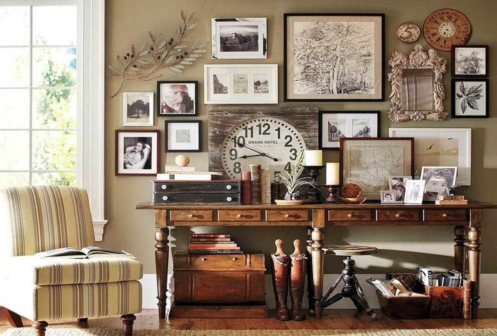 Можно повесить картину, панно над диваном или каминной полкой. Рамки для картины в классическом дизайне должны быть дорогими. Это может быть позолота, серебро, металл, или ценные породы дерева.
