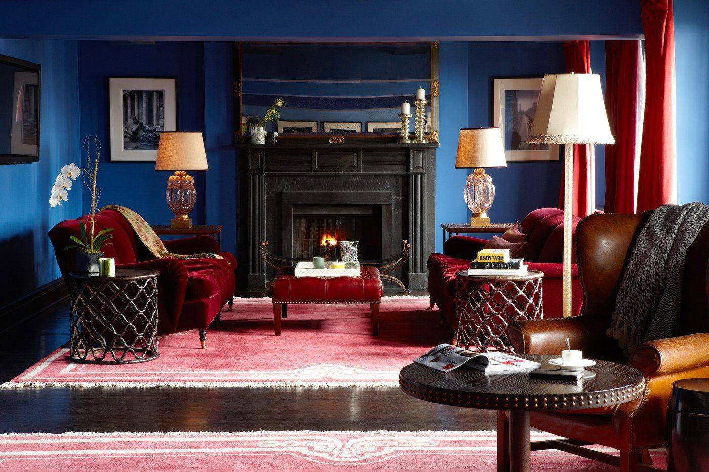 Берлинская лазурь в сочетании с темно-синим будет неплохим решением. Если разбавить тандем кремово-бежевыми оттенками, гостиная получится уютной, светлой и теплой.