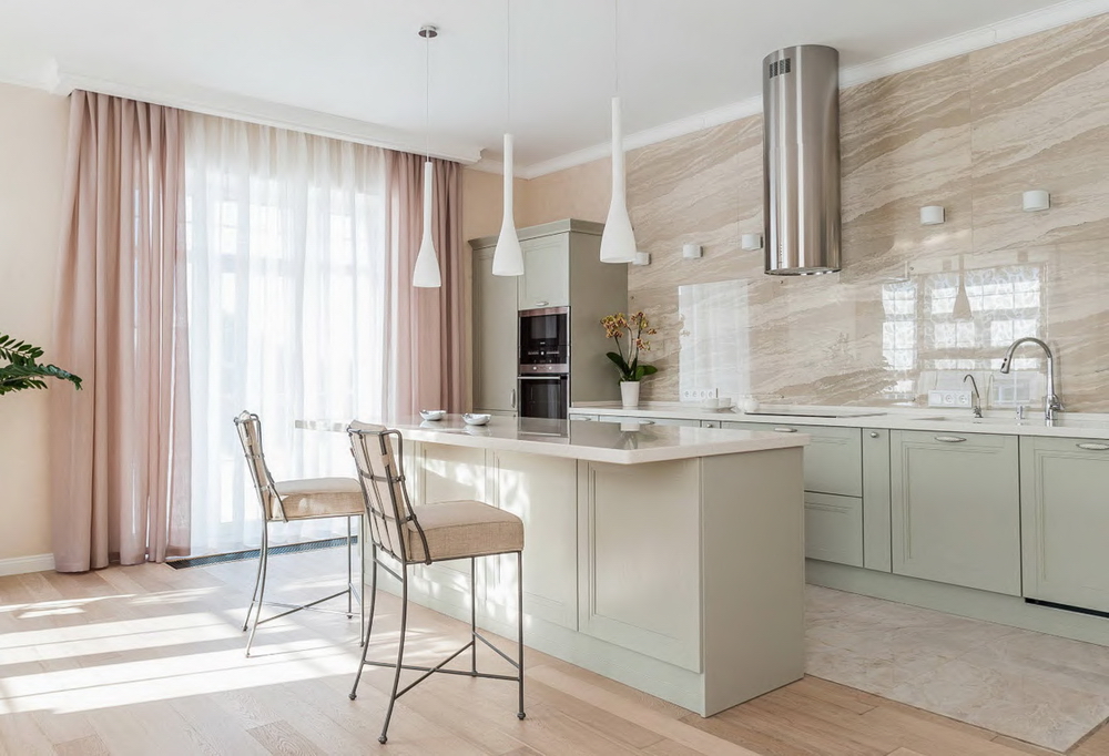 Это романтичное и очень нежное направление, названное в честь южно-французского региона, наполнит дом уютом и теплом. Кухня-гостиная в стиле «Прованс» – это изобилие дневного света, декора, текстиля, орнаментов, цветочных рисунков и мягкой, пастельной цветовой гаммы.