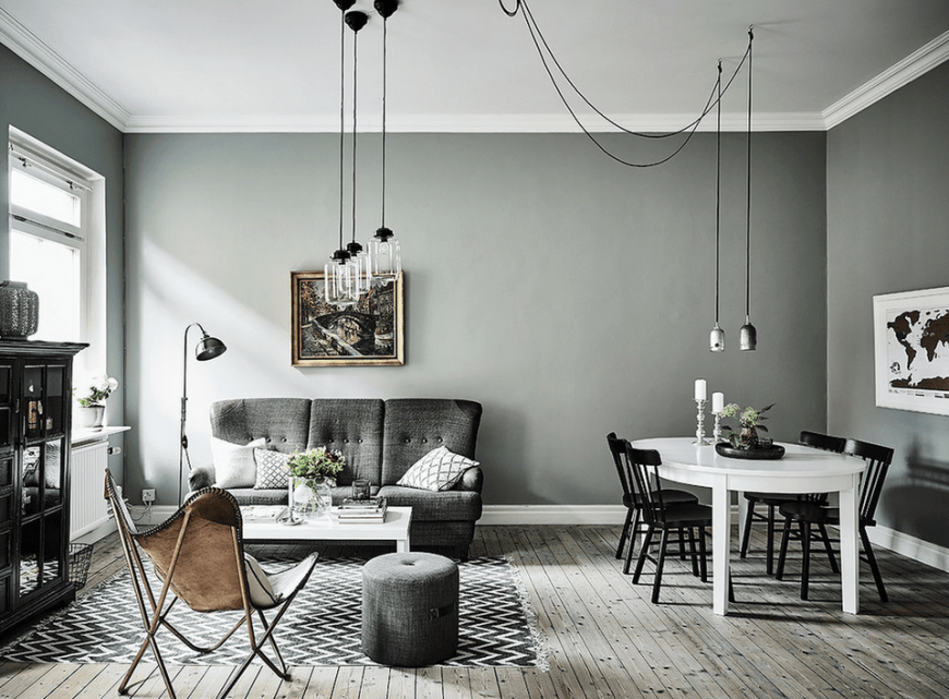 Аутентичные скандинавские дома предполагают жемчужно-серую гамму, а французский интерьер отличается теплой и мягкой серой расцветкой.