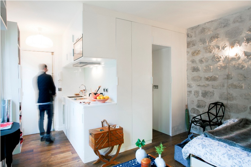 Чтобы студия казалась просторнее, можно взять на вооружение следующие приемы.