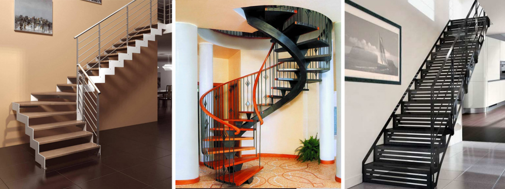 Независимо от разновидности, все лестницы 3-го типа выполняются исключительно из огнестойких материалов, основным из которых считается металл. Для несущих элементов конструкции берут балки, швеллера и уголки. Варианты выбора есть для настила ступеней маршевых конструкций: