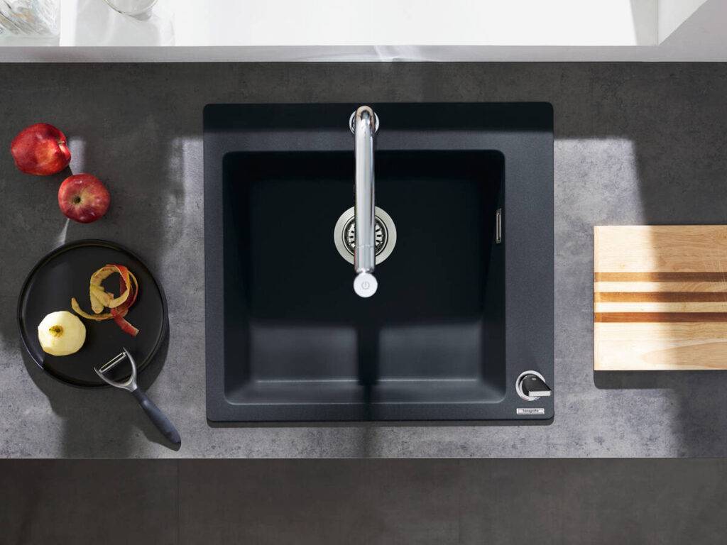Черная раковина на черной столешнице — такое раньше было невозможно