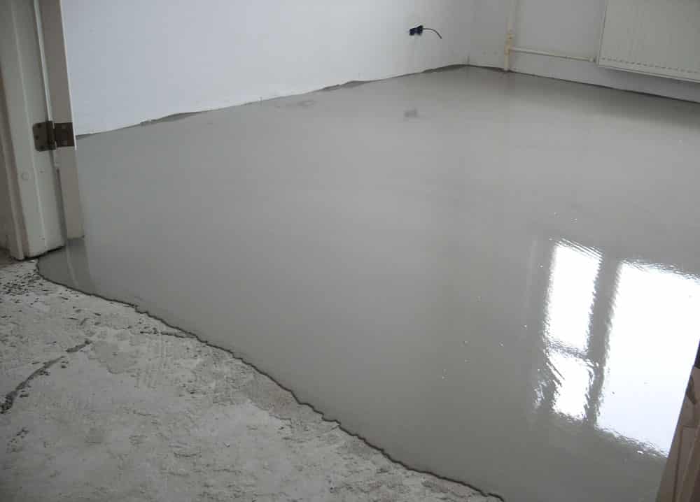 - Упрочняет. Если одна стяжка наносится поверх другой, особенно если работа ведется с наливными полами, то грунтовка обязательна. Она убирает частички пыли и увеличивает сцепление материала, что позволяет повысить прочность стяжки. Адгезия растет, основа меньше подвержена воздействию влаги из грунта.
