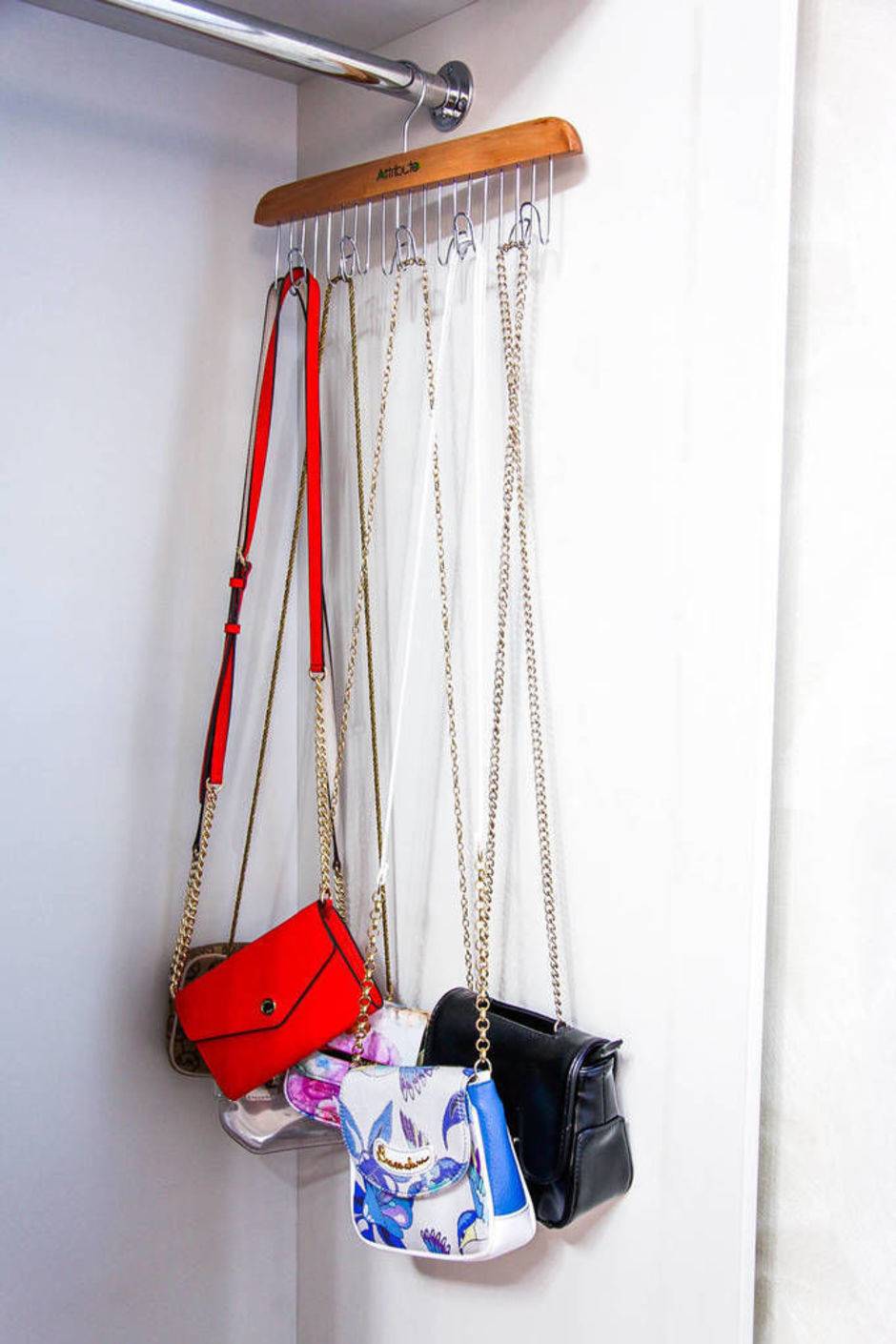 Простые и эффективные крючки Итак, это крючки, которые также можно найти в любом магазине. Вам просто нужно повесить их в шкаф. Поместите одну сумку внутри другой (помните, не более двух) и хранение подготовлено!