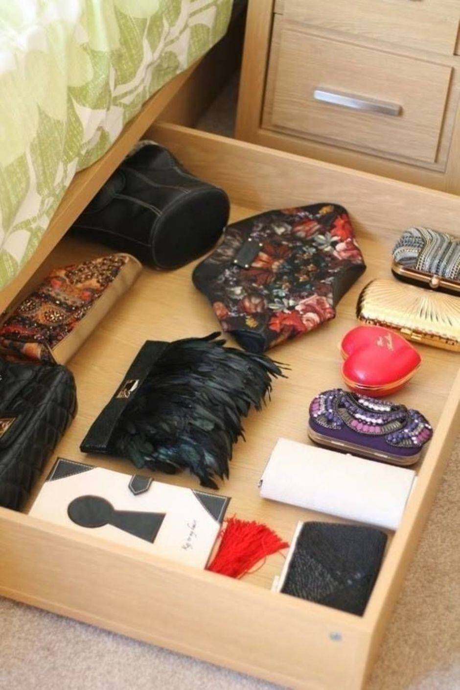 Под кроватью Ящики под вашей кроватью являются практичным решением для хранения сумок по типу, цвету или форме.
