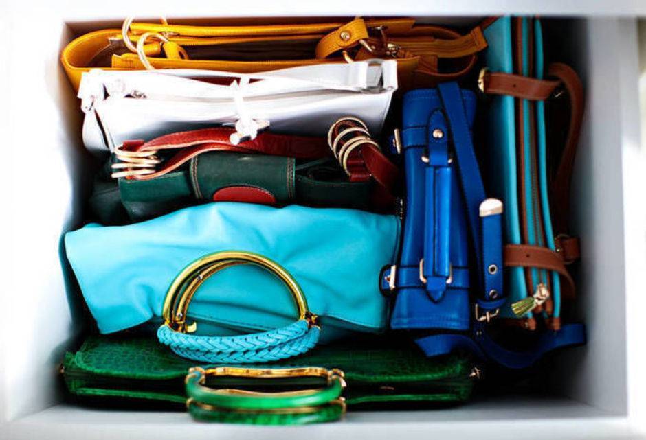 Прежде чем приступить к организации пространства для любимой коллекции аксессуаров, определитесь, какие из них будут использоваться часто, а какие нет. Сезонные и вечерние аксессуары, которые используются редко, необходимо освободить и почистить. Формованные сумки при неправильном хранении могут деформироваться, поэтому желательно заполнить пустое пространство в них мятой бумагой. Особого отношения требуют модели, украшенные стразами, пайетками или вышивкой. Прежде чем убрать их на длительное хранение, все детали и фурнитуру необходимо обернуть бумажными салфетками.