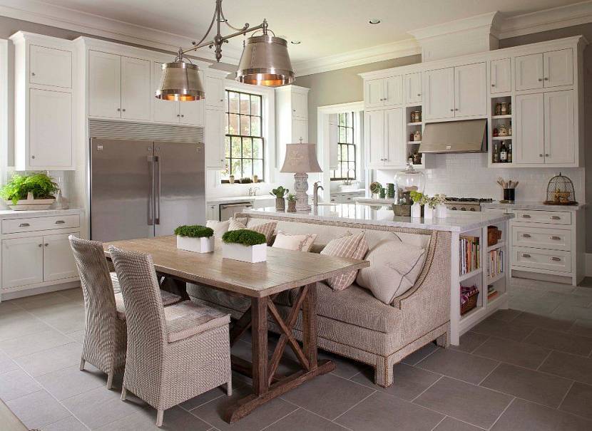 Кухня гостиная должна делиться на 3 зоны: рабочую, столовую и для отдыха. Последняя должна стать самой обширной.