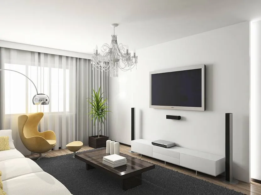 Хай-тек. Этот стиль больше подойдет молодым и современным парам. Направление схоже с минимализмом. Никакой лишней мебели и аксессуаров. Обязательным элементом являются стекло и металл. Главный акцент делается на оснащенность цифровым оборудованием. Например, повесьте большой телевизор или создайте в гостиной свой домашний кинотеатр.