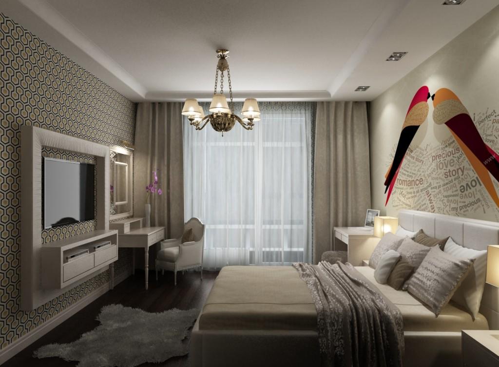 При оценке помещения необходимо учитывать его специфику, к примеру, наличие ниши, выступов, входа в балкон и т. д. Для большой спальни подходят фактурные обои, темные тона мебели, массовые люстры и разнообразие декоративных элементов.