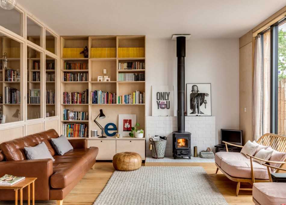 Камин — это центральный элемент в гостиных загородных домов. Как правило, это не просто небольшая печка буржуйка, а настоящий полноценный камин, который топиться дровами. Это не только очень красивый элемент интерьера, но и хороший способ отапливать помещение.