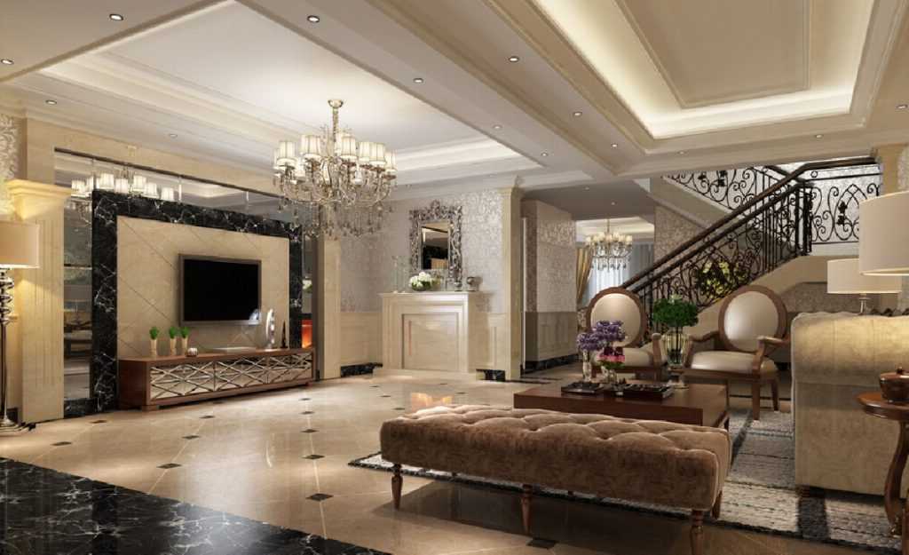 Неоклассический стиль предусматривает умелое сочетание современных технологий и материалов с традиционными предметами декорирования и интерьера прошедших столетий, таких как лепка на потолке, вокруг окон и двери, большие вазы, картины. Приветствуется обивка мебели дорогими материалами, такими как парча, бархат, шёлк.
