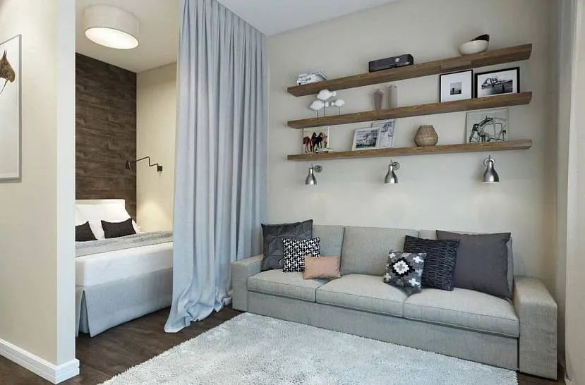 Зонирование спального места в маленькой гостинойИсточник postila.ru