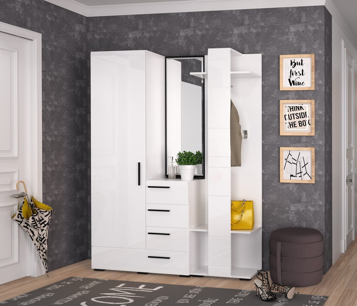 Выбери нужные и подходящие по размеру элементы – тумбу, одежный шкаф, обувницу (стоит отметить, что модульная мебель отличается компактностью) и расставь на свое усмотрение, чтобы удобно было пользоваться. В любой момент ты сможешь сменить наскучившую обстановку, просто переставив мебель местами.