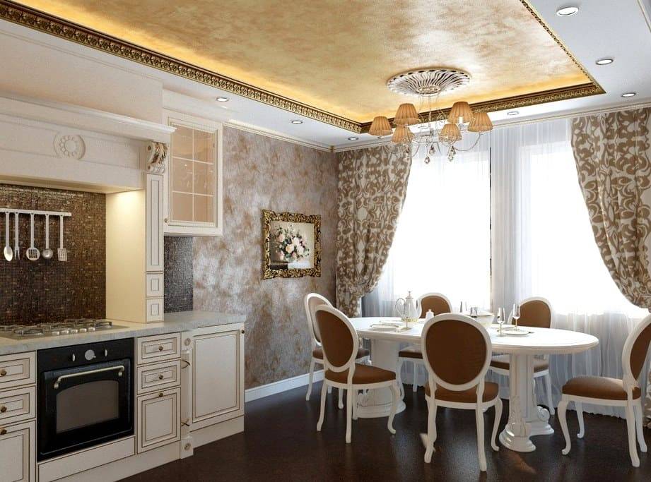 Текстиль занимает очень важную часть при оформлении классических интерьеров, а особенно – кухни. С пышными тяжелыми и массивными портьерами лучше не злоупотреблять. Они накапливают пыль, поглощают запахи, а возле плиты – еще и не очень безопасны.