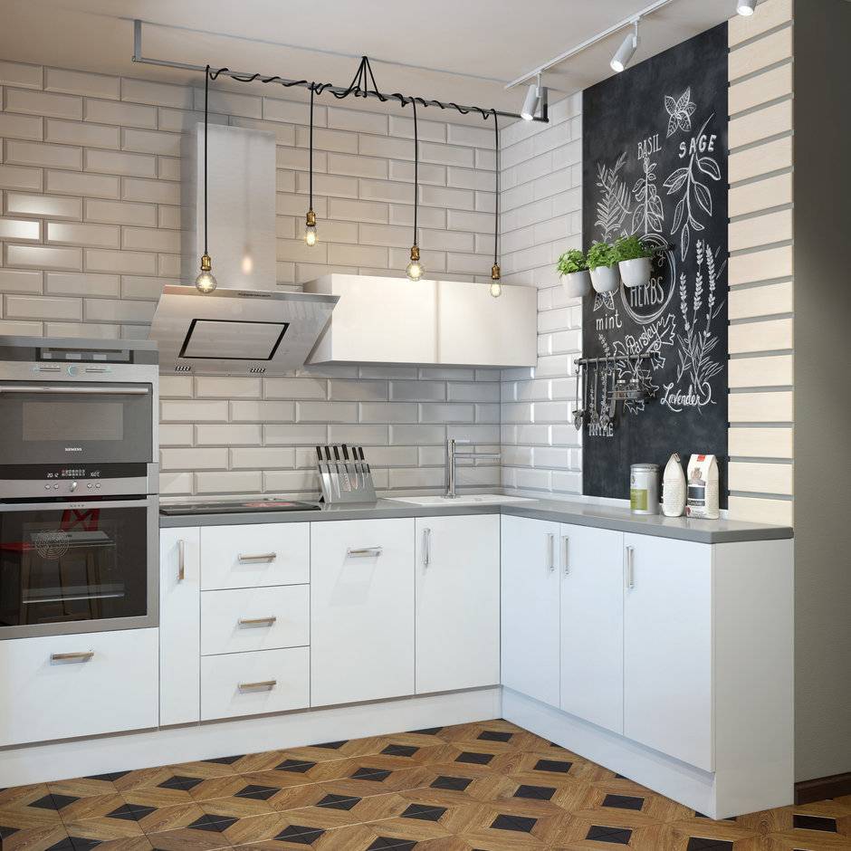 Выберите угловой или прямой гарнитур стандартной формы без дополнительных украшений на фасадах.