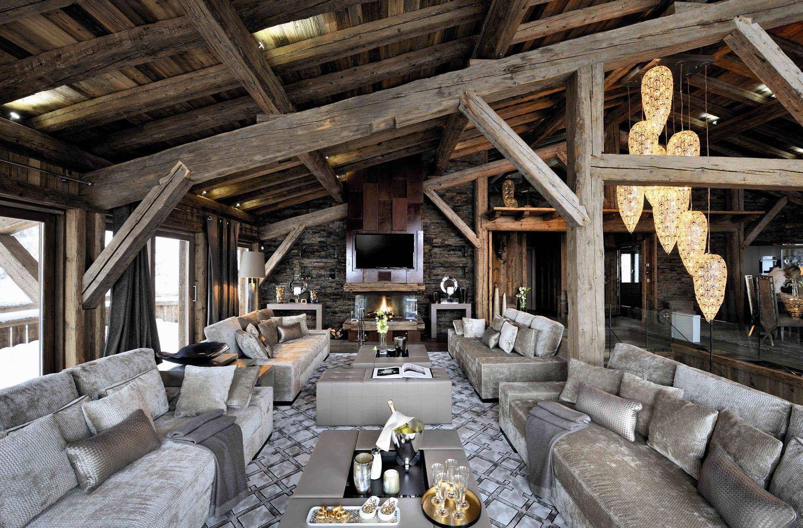 Гостиная в стиле шале должна быть просторной и не препятствовать воплощению самых смелых дизайнерских задумок.