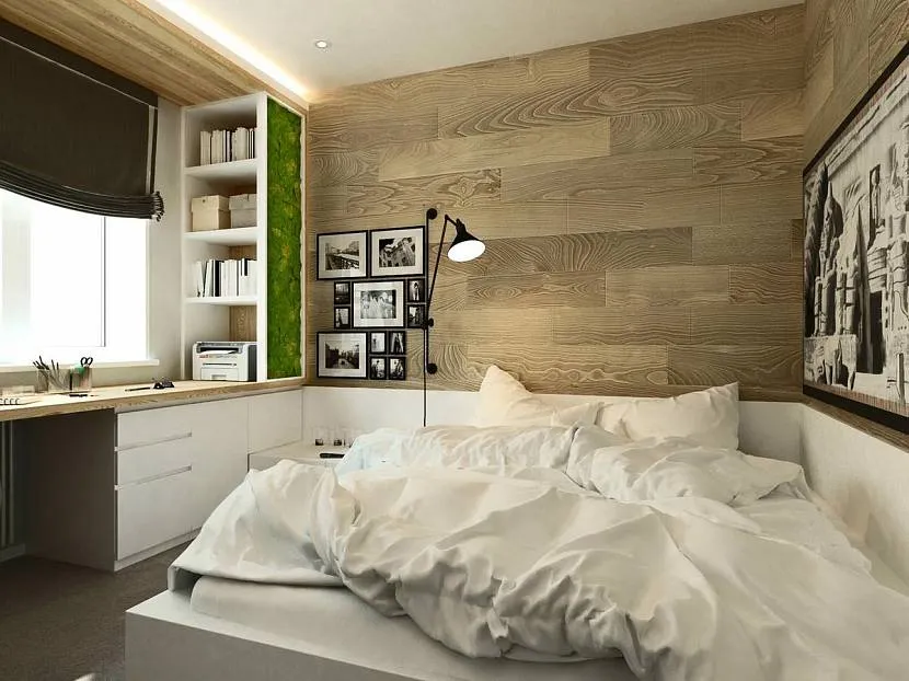 – Если не обойтись без шкафа, обрати внимание на узкие высокие пеналы или шкафы-купе с раздвижными дверями. Как вариант – модульные стенки до потолка с ящиками, полками и антресолью;. – Нужен стол и рабочее место? Выбирай складные, откидные или выдвижные модели;
