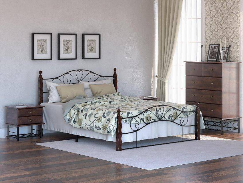 Те, кому позволяют средства, могут приобрести кованую кровать. Она станет элегантной «изюминкой» интерьера спальни.